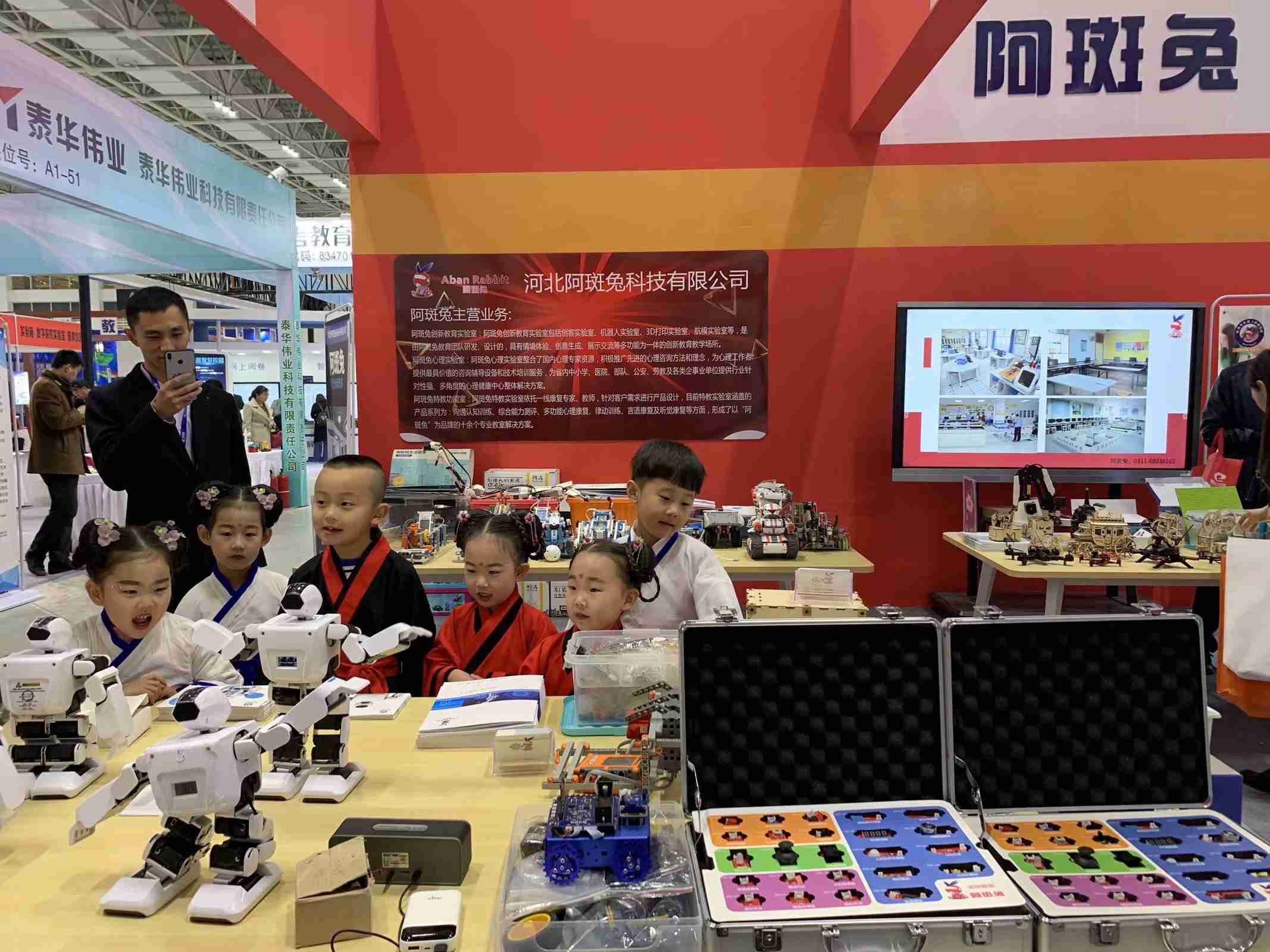 阿斑兔將機器人、創(chuàng)客、3D打印、航模等融為一體,研發(fā)、設(shè)計具有情景體驗、創(chuàng)意生成、原型制作、展示交流等多功能為一體的機器人教育教學(xué)場所,即創(chuàng)新教育實驗室,針對不同年齡段學(xué)生的特點、學(xué)校學(xué)情等,為其提供足夠的空間、設(shè)備和完善的課程體系。